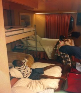 At about 1:30 on the day of departure, we learned that the cabins were ready. The ship had just returned from one of its 5 day cruises that morning, so it took a while to get every stateroom ready.